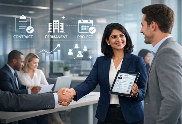 Our contract staffing solutions enable businesses to scale their workforce quickly with skilled professionals for short-term or specialized needs. We manage compliance, documentation and workforce administration, allowing you to focus on core operations.